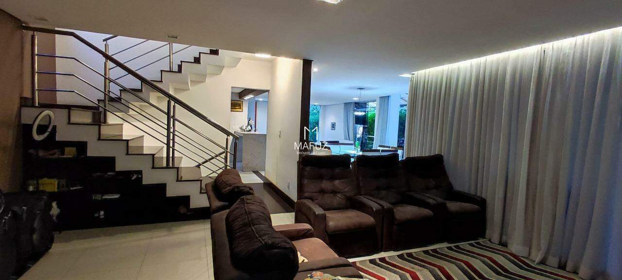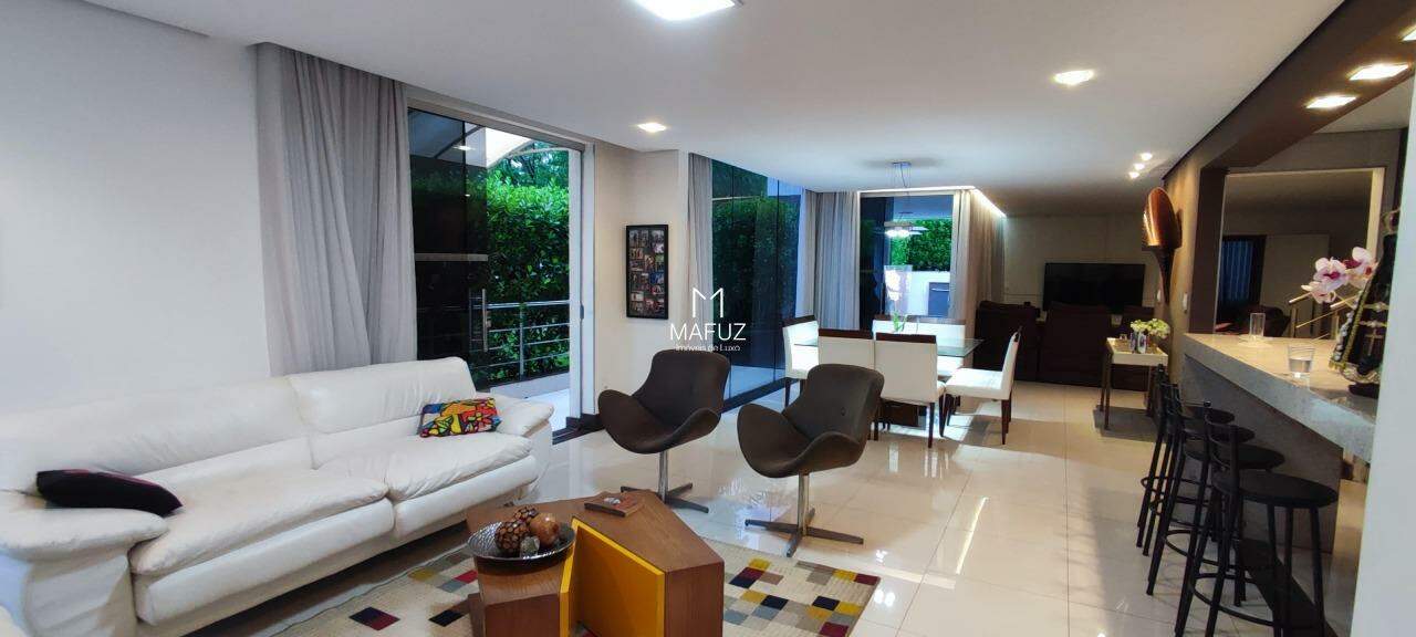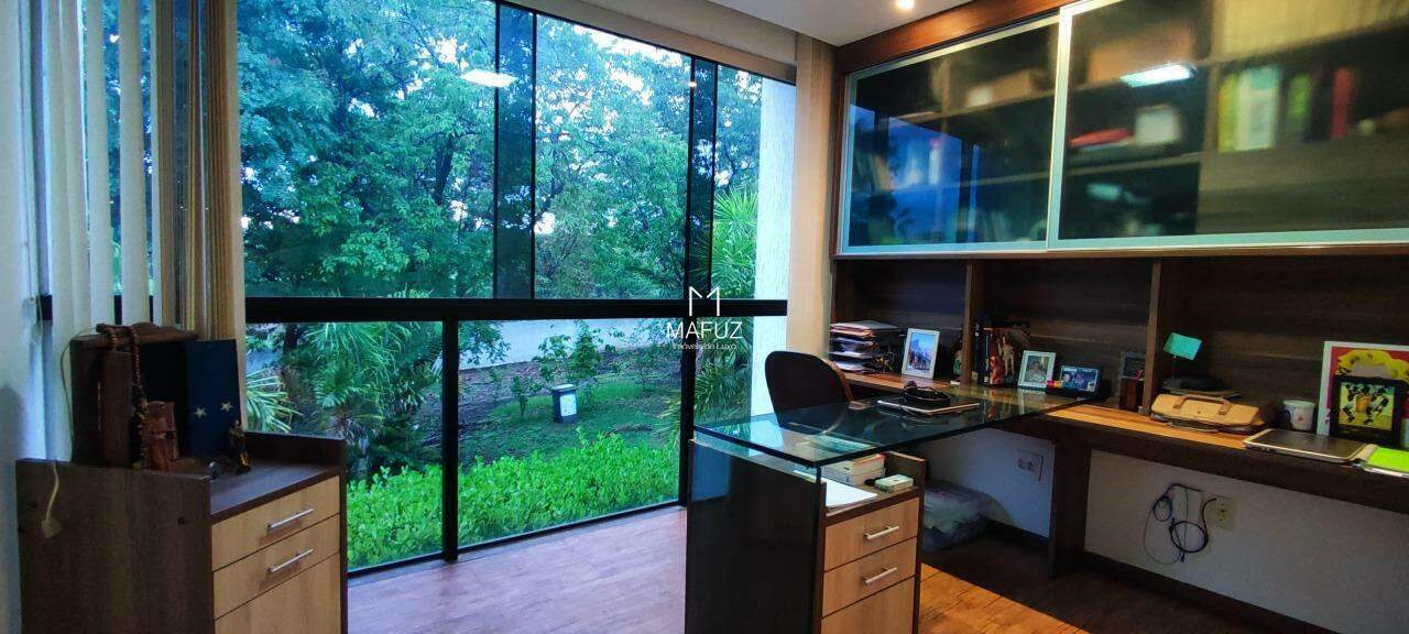 05 quartos sendo 03 suítes com closet, 02 semi- suíte, sala ampla com pé direito duplo, um. Escritório ,cozinha em ilha com armários planejados , lavabo, área de serviço coberta, fino acabamento, espaço gourmet completo com piscina integrada a sauna a gás, churrasqueira e bancada em granito, garagem coberta para 04 carros.